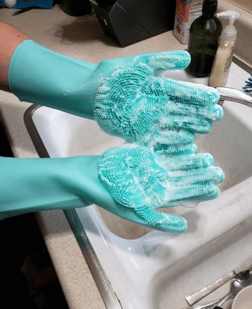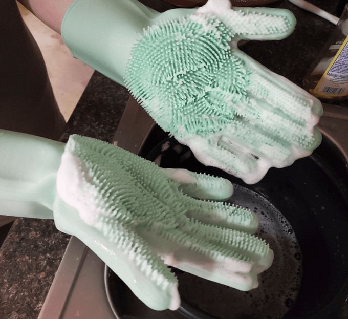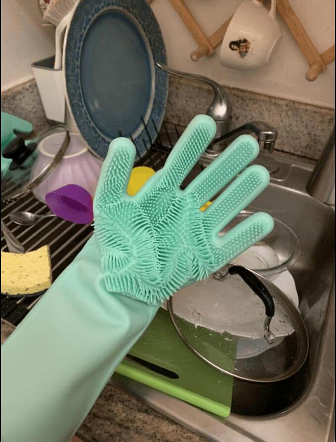 My old sponge lying around my sink is NASTY, I kept using it cause I didn’t know of a real alternative. I came across these and they are MUCH more sanitary. There’s no gunk that clings to them the way it does with my sponges that I’ve been using for years so I feel way better cleaning my dishes and silverware with these gloves.